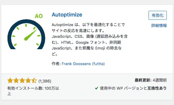 AutoptimizeはCSSやJSなどのリソースを軽量・最適化